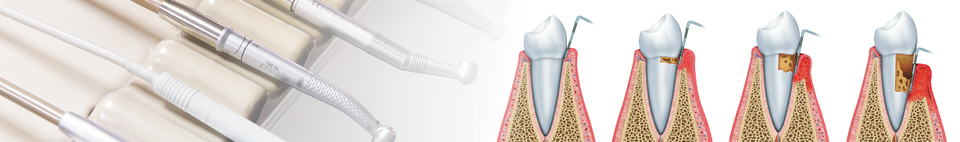 - Surgical periodontal treatment: flap surgery, gum grafts, bone grafts, tissue regeneration, root resection;