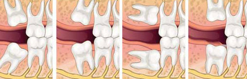 Les molaires de sagesse apparaissent généralement à l’âge de 15-20 ans. Cependant, dans le cas où il n’y a pas d’espace pour ces dents, ils ne peuvent pas se développer et restent sous le niveau de la gencive ou dans l’os de la mâchoire.