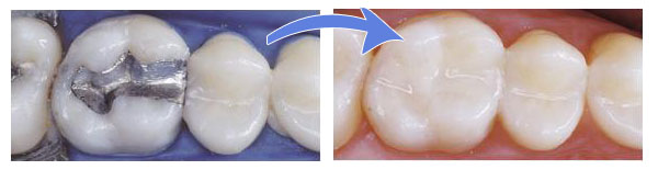 La partie compromise de la dent est enlevée et est remplacée avec des matériaux tels que la résine, l’amalgame ou les matériaux céramiques.